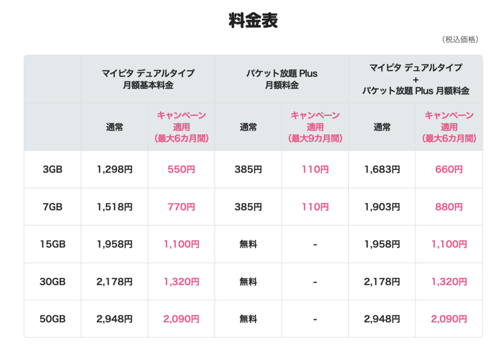 マイピタ1~20GB 最大6カ月間990円キャンペーン