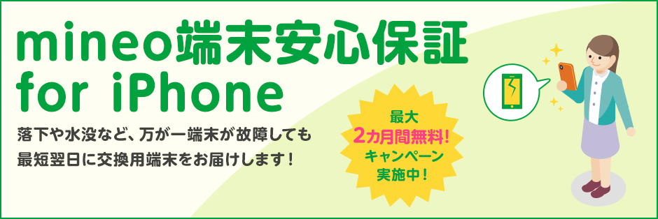 ご利用開始月から最長2カ月間、mineo端末安心保証 for iPhoneの月額料金が無料になります。