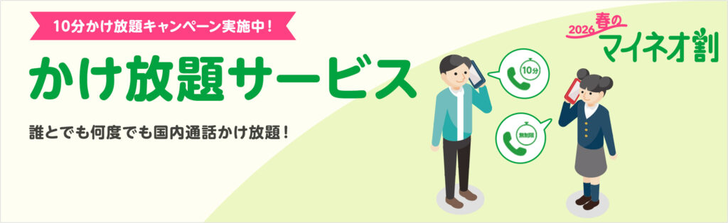 「10分かけ放題」「時間無制限かけ放題」が初月無料になります。